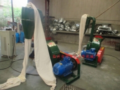 该机结构是锤片式,可以与各种形式的喂料结构相配,产品为对称排列,粉碎机工作时,拨料齿自动将物料拨入粉碎室,粉碎室内有高速旋转的锤片,上机体上装有齿板,加入的物料在锤片的强烈冬季、撕裂和揉搓等作用下迅速被粉碎成粉状,由于离心力和粉碎机下腔负压的作用,细碎的物料通过筛孔落到小腔之后被风机吸走,又由风机送到离心卸料器内,或集料间内。