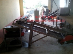 工作时原料由皮带输送机输送至玻璃破碎机料斗,进入破碎机破碎,在破碎过程当中,风机除尘系统开始工作,将粉尘用湿法除尘方式,除尘干净彻底,保证工作环境良好,环保卫生,破碎好的玻璃颗粒再由输送机输送到多层振动筛选机筛选,根据用户需求一次筛选出理想的规格,然后分别装袋. 厂址:山东省临沂市河东区凤凰岭街道大华机械厂 电话:0539-8850165手机:13705493713 18653538165